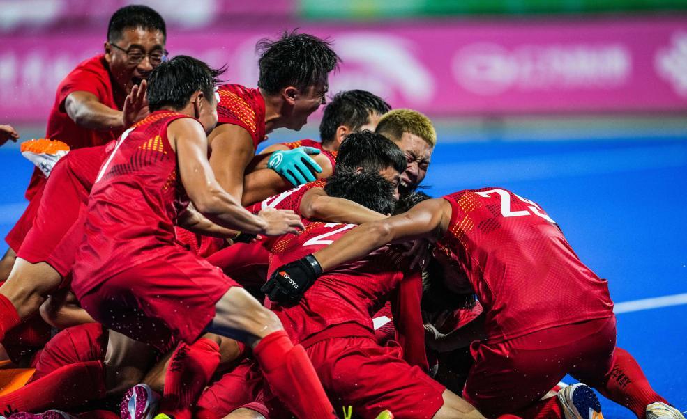 新华社广州11月15日电(记者刘洋)第十五届全运会男子曲棍球决赛15日在广东云浮举行。卫冕冠军广东队在常规时间内与内蒙古队1:1打平。 23米球决战,内蒙古队3:2击败东道主,时隔32年再次夺得全运会金牌。 11月15日,内蒙古队球员赛后庆祝胜利。新华社记者 陶亮 比赛开始仅2分钟,广东队就获得了点球机会。后卫阮振武一击破门,广东队取得领先。第二节,内蒙古队进攻大力,连续获得角球机会,但广东队主帅王伟豪多次做出精彩扑救。许久没有进攻的内蒙古队终于在第四节扭转了局面。后卫 敖伟宝利用点球扳平比分,将比赛拖入23米球决战。 23米球“一对一”中,前四轮双方打成2:2平。第五轮,内蒙古队后卫关强阳得分,但广东队队长陈其军失手。蒙古室内队时隔32年后再次夺得金牌。 11月15日,内蒙古队球员关强洋在比赛中庆祝进球。新华社记者 陶亮 摄:广东队主教练翁海钦赛后表示:“这是一场精彩的比赛,全国赛前四名的球队非常接近,为什么我们不能在常规时间内解决比赛。”内蒙古队主教练德云泽表示:“我们做了充分的准备,包括如何打后球、逆风、短角球、23米球。我们早早失分,但没有影响赛前计划。”球员们都很放松,没有急躁,这场胜利来之不易。”在铜牌中,t辽宁队5:2战胜甘肃队,获得季军。 上一篇:从1995年出生的老师到“最可爱的花”,美丽地方